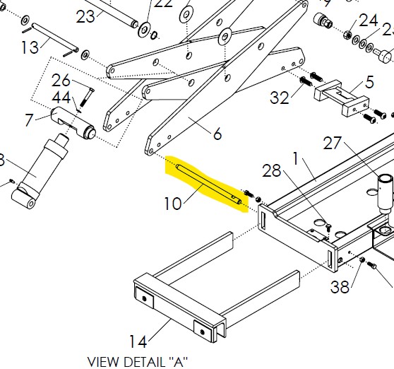 This precision steel pin secures the hydraulic cylinder in place in between the scissor plates, maintaining proper alignment and safe operation of the bridge jack.